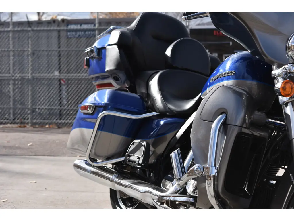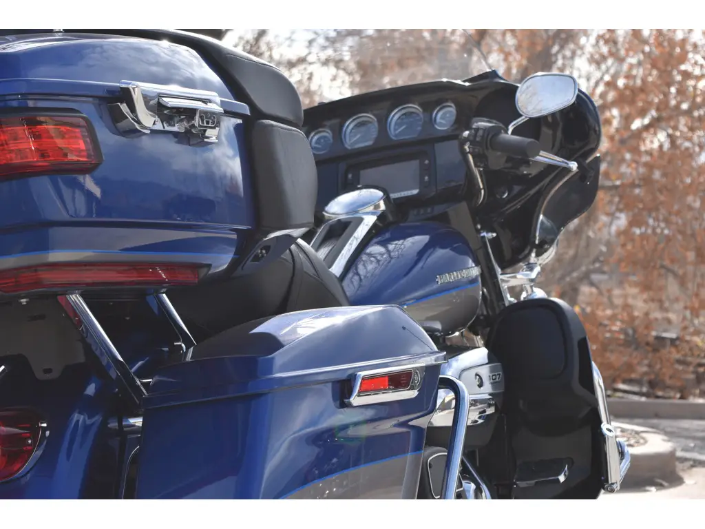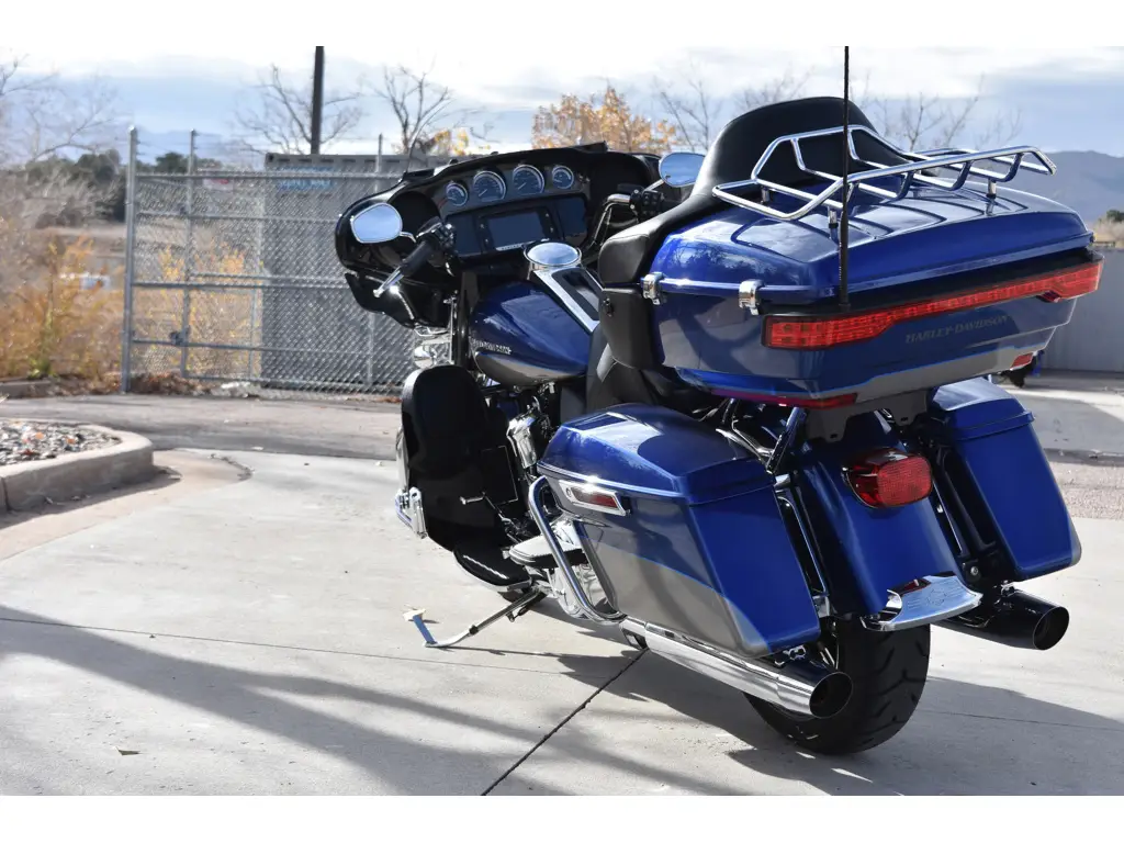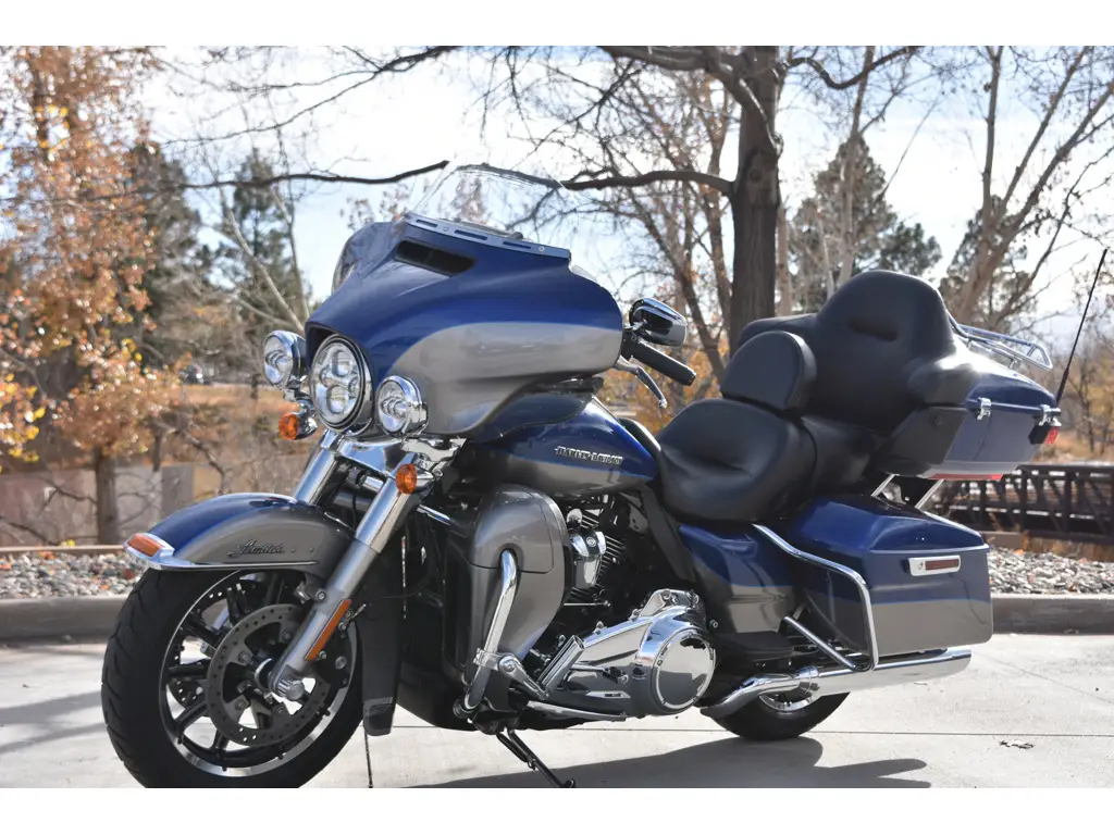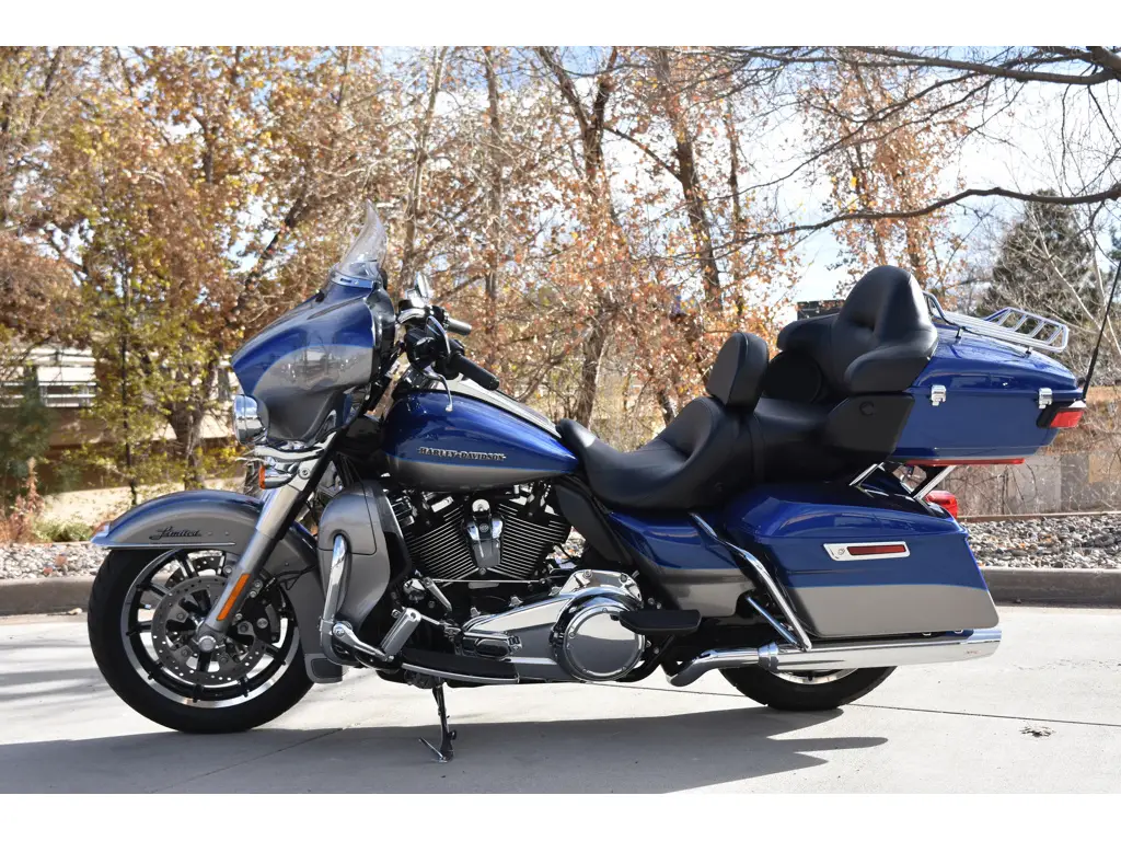 2017 Harley-Davidson Electra Glide Ultra Limited, Displacement: 107 cu in. (1,746 cc) Engine Type: Milwaukee-Eight 107 Bore and Stroke: 3. 937 in. (100 mm) x 4. 375 in. (111. 1 mm) Cooling: Liquid Compression Ratio: 10. 0: 1 Fuel System: Electronic Sequential Port Fuel injection (ESPFI) Front Brakes: 32 mm, 4-piston fixed front and rear Rear Brakes: 32 mm, 4-piston fixed front and rear Front Tire: BW 130/80B17 65H Rear Tire: BW 180/65B16 81H Wheelbase: 64 in. (1,625 mm) Seat Height: Laden: 27. 4 in. (696 mm); Unladen: 29. 1 in. (740 mm) Rake: 26 deg. Trail: 6. 7 in. (170 mm) Fuel Capacity: 6 gal. (22. 7 L) MPG: 45 mpg (5. 2 l/100 km) Dry Weight: 860 lb. (390 kg) Transmission: 6 speed Colors: Vivid Black.