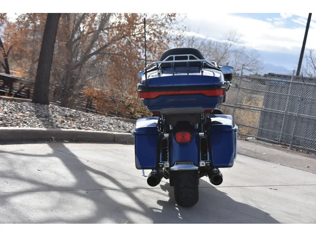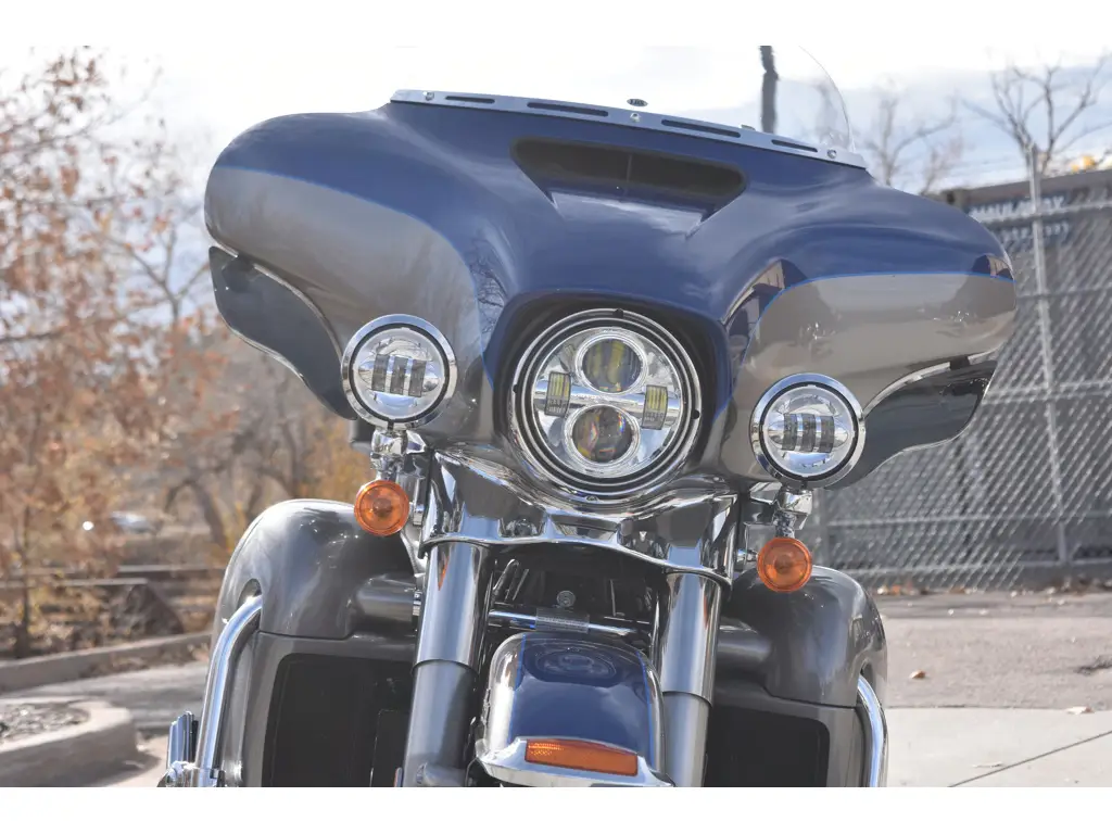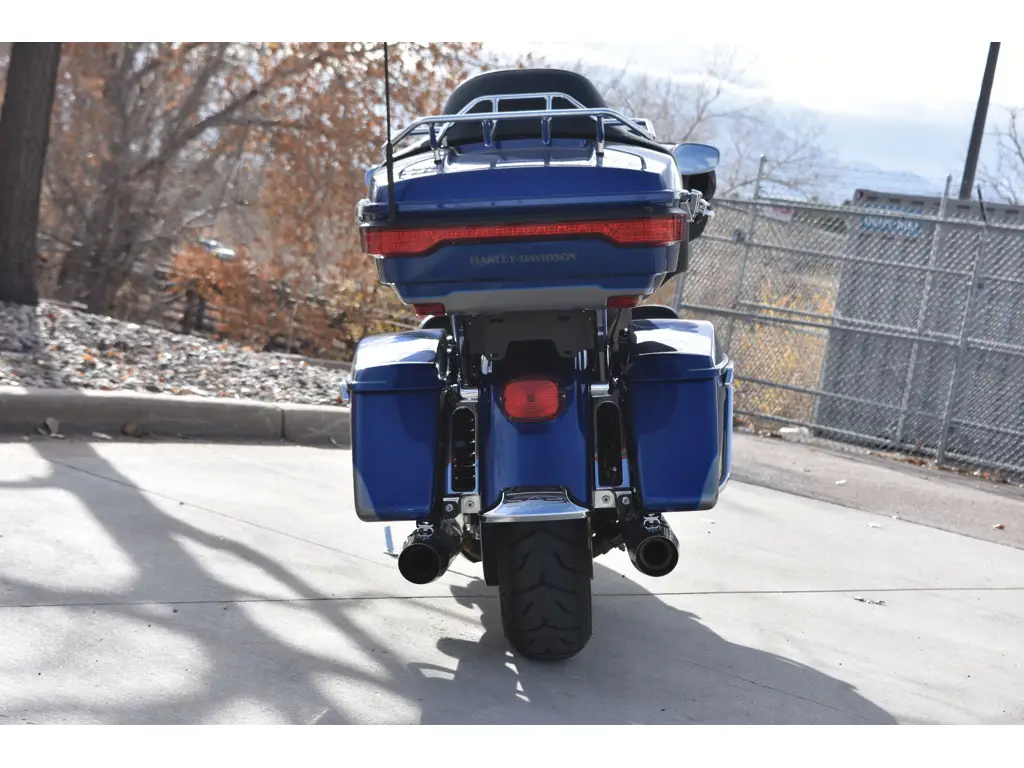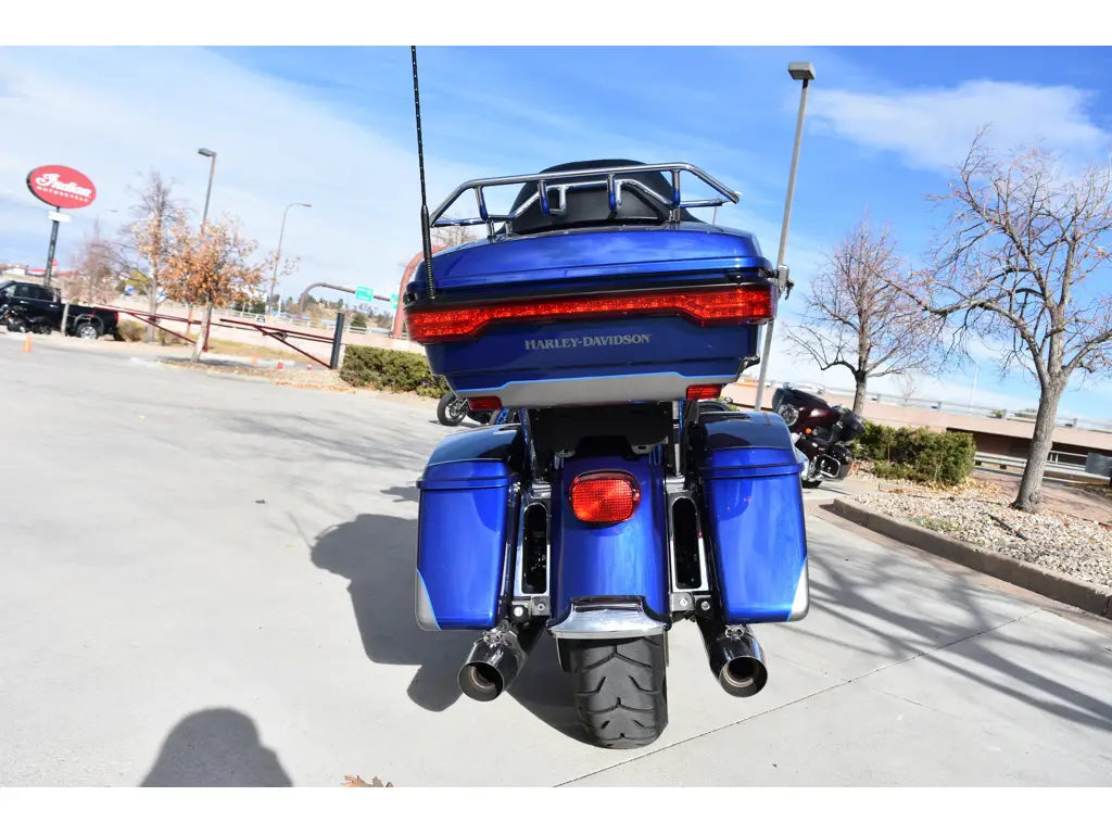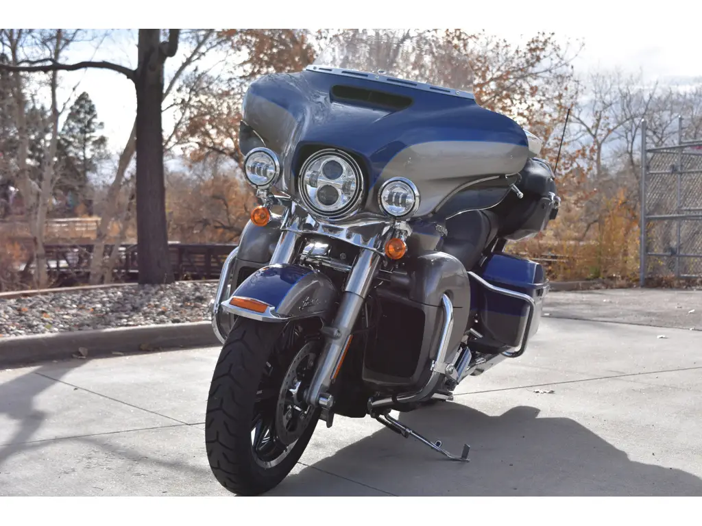 2017 Harley-Davidson Electra Glide Ultra Limited, Displacement: 107 cu in. (1,746 cc) Engine Type: Milwaukee-Eight 107 Bore and Stroke: 3. 937 in. (100 mm) x 4. 375 in. (111. 1 mm) Cooling: Liquid Compression Ratio: 10. 0: 1 Fuel System: Electronic Sequential Port Fuel injection (ESPFI) Front Brakes: 32 mm, 4-piston fixed front and rear Rear Brakes: 32 mm, 4-piston fixed front and rear Front Tire: BW 130/80B17 65H Rear Tire: BW 180/65B16 81H Wheelbase: 64 in. (1,625 mm) Seat Height: Laden: 27. 4 in. (696 mm); Unladen: 29. 1 in. (740 mm) Rake: 26 deg. Trail: 6. 7 in. (170 mm) Fuel Capacity: 6 gal. (22. 7 L) MPG: 45 mpg (5. 2 l/100 km) Dry Weight: 860 lb. (390 kg) Transmission: 6 speed Colors: Vivid Black.